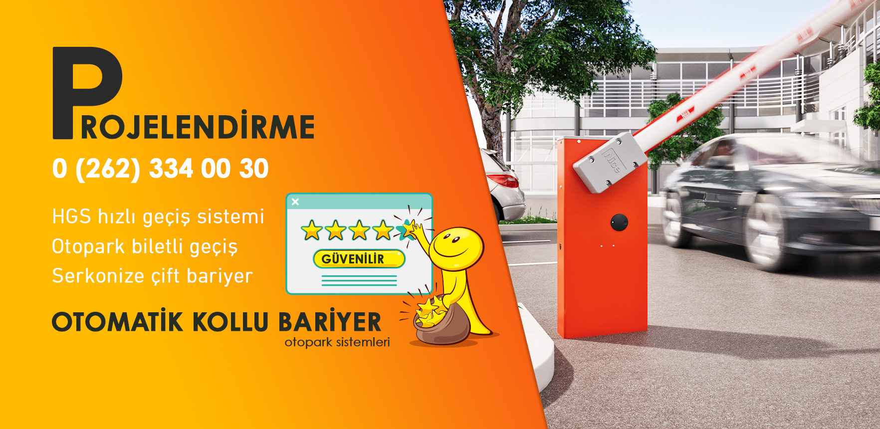 Otomatik Bariyer Sistemleri günümüzde iş yerlerinde otoparkların girişlerinde büyük sitelerde ve fabrika girişlerinde yoğun olarak kullanılmaktadır. Otomatik Bariyerler araç geçişini kontrol altına almak için tasarlanmış emniyet sistemidir. Otomatik Kollu Bariyer Sistemleri 3 metreden 8 metreye kadar olan açıklıklarda tercih edilen Otomatik Bariyer Sistemleri çeşididir. Kurulumu ve kullanımı son derece kolay olan kollu bariyerler apartman girişlerinden tutunda binlerce kişinin giriş çıkış yaptığı şehir otoparklarına kadar çok farklı yerlerde tercih edilirler. Manuel kullanımdan başlayarak Otomatik Geçiş Sistemleri OGS kadar her türlü sistemle entegre olarak çalıştırılabilirler. Daha yüksek güvenlik ve hatta anti-terör olarak kullanılan Bariyer türü ise Otomatik Mantar Bariyerler dir. Otomatik Mantar Bariyerler cadde ve sokakların araç trafiğine kapatılması için kullanılan ve her türlü otomasyon sistemi ile senkronize çalıştırılabilen Bariyer çeşididir. Uzmandoor her türlü Otomatik Kollu Bariyer ve Otomatik Mantar Bariyer çeşitlerinin satış montaj servis ve yedek parça hizmetini vermektedir.